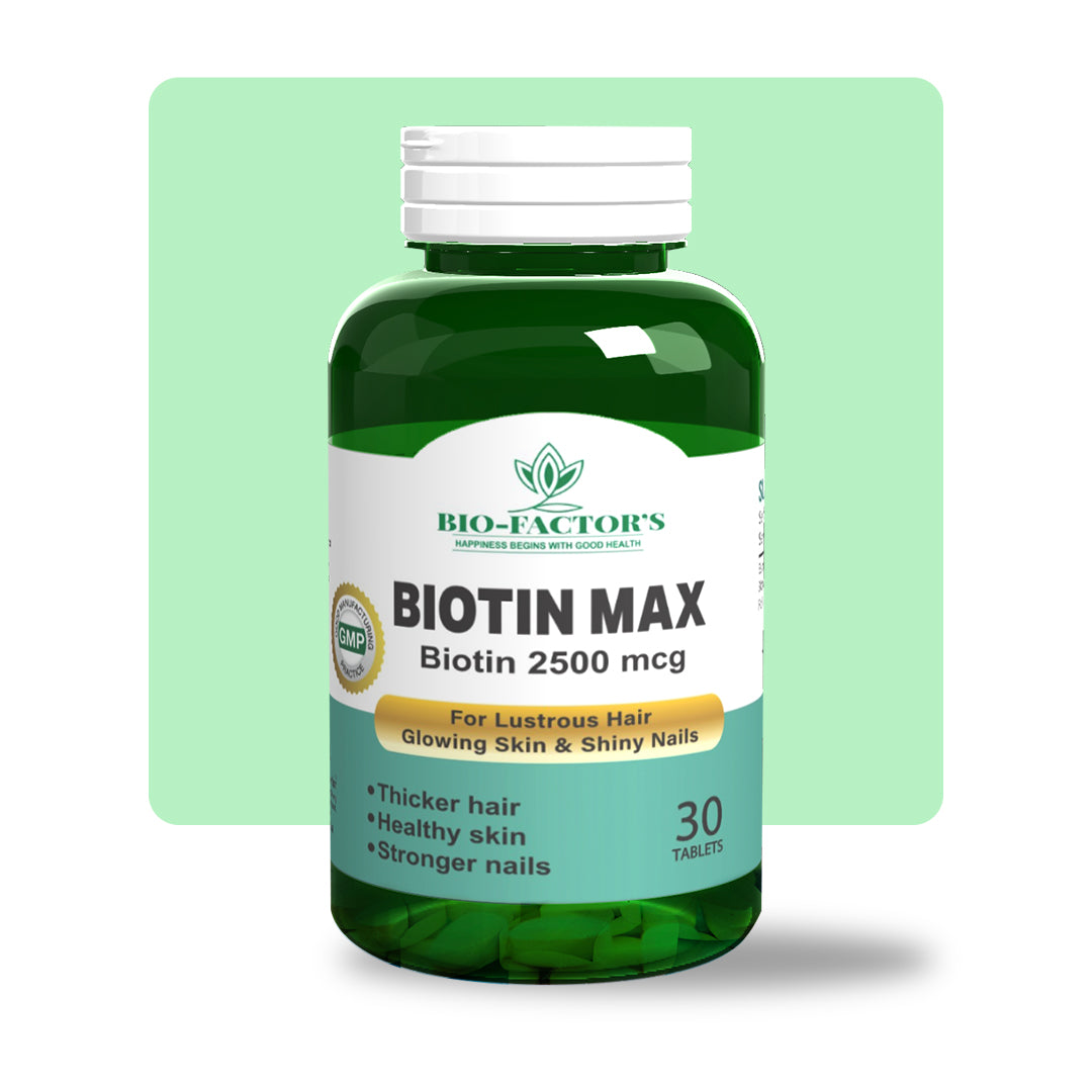 Biofactors Biotin Max is a daily dietary supplement formulated to support the natural health of your hair, skin, and nails. Each tablet delivers a consistent dose of Biotin (Vitamin B7), an essential nutrient that plays a role in maintaining your body’s beauty and wellness balance.